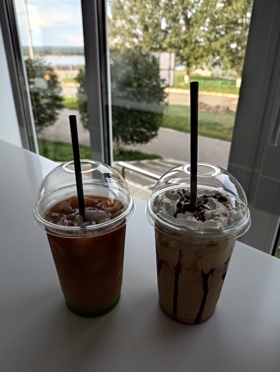Всегда заказываю капучино на альтернативном (смотря на погоду, если тепло, то заказываю холодный) и классический айс латте, если с нами третий человек обязательно беру и ему кофе, что бы попробовал!