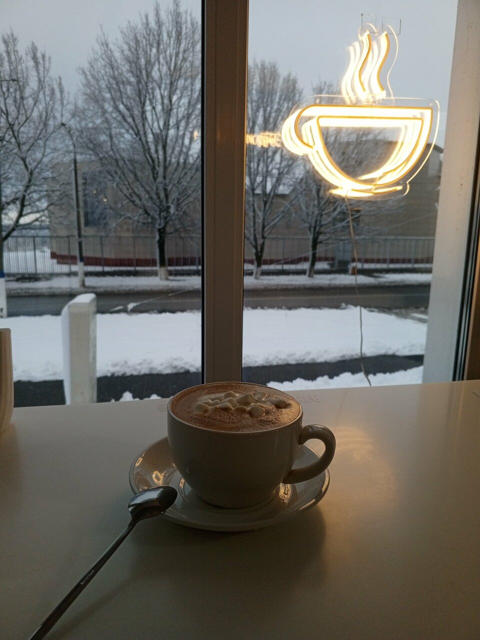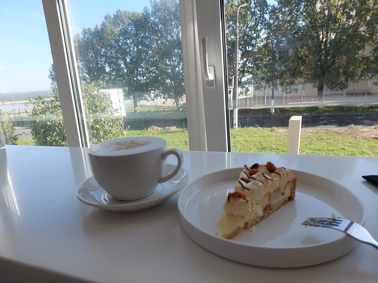 В кофейне очень уютно и красивый вид на Набережную ❤️
