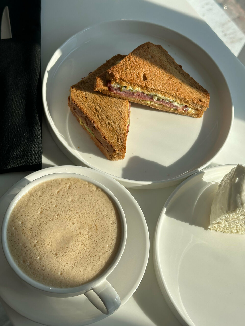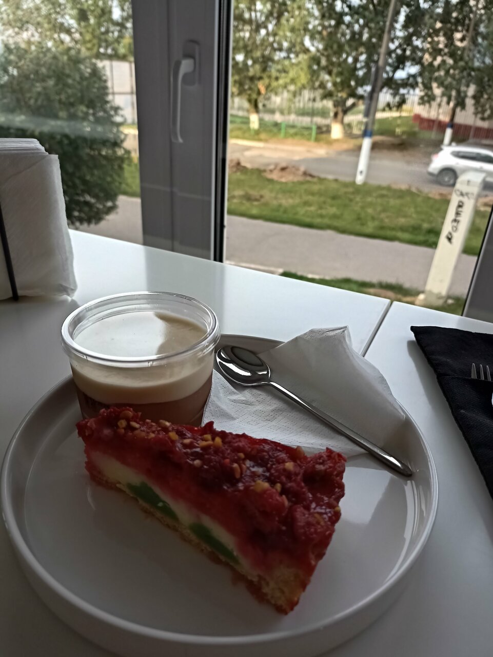 Еда - очень вкусная. Брала бриошь с курицей и ветчиной, чизкейк, сырники - все просто топчик.