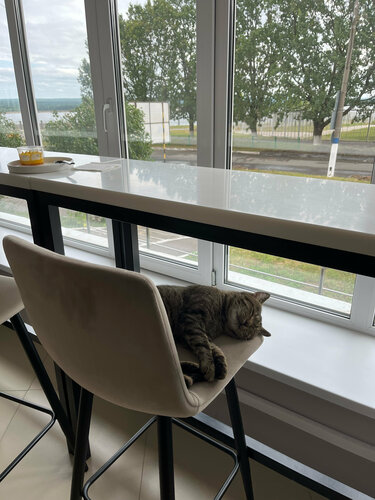 Есть детский столик с книжками, барный стол с видом на набережную, чистая уборная.